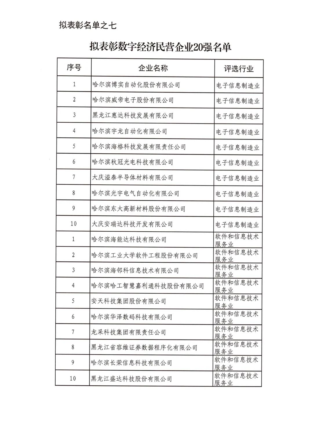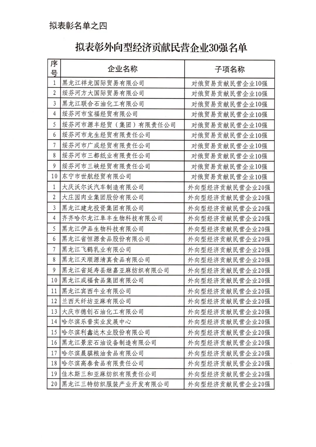按照省委省政府關(guān)于召開(kāi)全省民營(yíng)經(jīng)濟(jì)大會(huì)的決策部署要求,擬對(duì)全省優(yōu)秀民營(yíng)企業(yè)進(jìn)行表彰。經(jīng)企業(yè)自愿申報(bào)、市(地)把關(guān)推薦,評(píng)審小組排名,征求相關(guān)部門(mén)意見(jiàn)等程序,擬表彰全省累計(jì)納稅民營(yíng)企業(yè)50戶、就業(yè)突出貢獻(xiàn)民營(yíng)企業(yè)20戶、民營(yíng)高新技術(shù)企業(yè)50戶、外向型經(jīng)濟(jì)貢獻(xiàn)民營(yíng)企業(yè)30戶、龍江質(zhì)量品牌優(yōu)秀民營(yíng)企業(yè)50戶、生物經(jīng)濟(jì)民營(yíng)企業(yè)20戶和數(shù)字經(jīng)濟(jì)民營(yíng)企業(yè)20戶。現(xiàn)將擬表彰名單予以公示。
